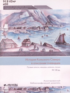 История Кольского Севера в описаниях очевидцев : путевые записки, мемуары, дневники, письма, XV-XX вв. : библиографический указатель / сост. Е. Р. Михайлова ; предисл. П. В. Фёдоров. - Мурманск : РУСМА, 2011. - 142 с.