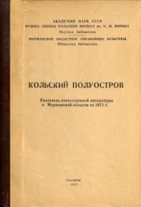 Кольский полуостров : указатель отечественной литературы о Мурманской области за 1971 г. / Акад. наук. СССР, Кол. фил. им. С. М. Кирова, Науч. б-ка, Мурм. обл. упр. культуры, Обл. б-ка ; сост.: М. Т. Беспалова [и др.]. - Апатиты : [б. и.], 1973. - 307 с.
