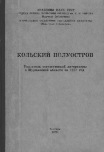 Кольский полуостров : указатель отечественной литературы о Мурманской области за 1977 год / Акад. наук СССР, Кол. фил. им. С. М. Кирова, Науч. б-ка, Мурм. обл. упр. культуры, Обл. б-ка ; сост.: И. Т. Беспалова, В. А. Федосова. - Апатиты : [б. и.], 1979. - 466 с.