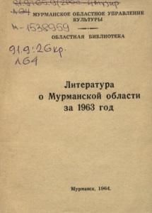 Литература о Мурманской области за 1963 год / Мурм. обл. упр. культуры, Обл. б-ка ; [сост. А. Власова]. - Мурманск : [б. и.], 1964. - 192 с.
