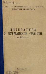 Литература о Мурманской области за 1964 год / Мурм. обл. упр. культуры, Обл. б-ка ; [сост. А. Власова, Л. Дрябезгова]. - Мурманск : [б. и.], 1965. - 135, [1] с.