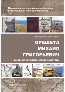 Орешета Михаил Григорьевич : библиографический указатель/ Мурм. гос. обл. универс. науч. б-ка ; [сост. О. Н. Фролова ; редкол.: Е. Р. Михайлова, О. В. Уринцова ; науч. консультант А. А. Чапенко ; ред.: Е. Н. Мудревская]. – Мурманск : МГОУНБ, 2017. - 150 с. - (Серия биобиблиографий «Краеведы Земли Кольской»).