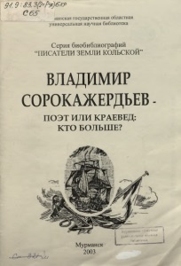 065 ___ ианская государственная областная универсальная научная библиотека Серия биобиблиографий “ПИСАТЕЛИ ЗЕМЛИ КОЛЬСКОЙ” ВЛАДИМИР СОРОКАЖЕРДЬЕВ ПОЭТ ИЛИ КРАЕВЕД: КТО БОЛЬШЕ? — О н » — 3 г м Мурманск 2003 •сал’ьяая