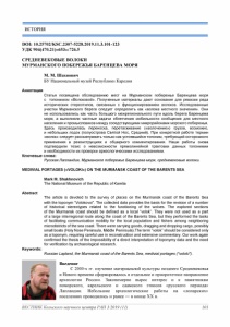 ИСТОРИЯ DOI: 10.25702/KSC.2307-5228.2019.11.3.101-123 УДК 904(470.21)«653»:726.5 СРЕДНЕВЕКОВЫ Е ВОЛОКИ МУРМАНСКОГО П О Б Е РЕЖ ЬЯ БАРЕНЦЕВА МОРЯ М. М. Шахнович БУ Национальный музей Республики Карелия Аннотация Статья посвящена обследованию мест на Мурманском побережье Баренцева моря с топонимом «Волоковой». Полученные материалы дают основание для ревизии ряда исторических стереотипов, связанных с функционированием волоков. Исследованные участки Мурманского берега следует определить как «волока местного значения». Они не использовались как часть большого межрегионального пути вдоль берега Баренцева моря, а выполняли частные задачи облегчения мобильности сообщения для местного населения и промысловиков между соседствующими микрорайонами морского побережья. Здесь производилась переноска, перетаскивание («волочение») грузов, возможно, и небольших лодок (полуострова Святой Нос, Средний). При конкретной работе термин «волок» следует рассматривать только как устоявшийся топоним, требующий осторожного применения в реконструкциях и обширного комментирования. Наши работы снова подтвердили тезис о невозможности прямолинейной трактовки данных топонимии и необходимости их проверки археологическими исследованиями. Ключевые слова: Русская Лапландия, Мурманское побережье Баренцева моря, средневековые волоки. MEDIVIAL PORTAGES («VOLOKI») ON THE MURMANSK COAST OF THE BARENTS SEA Mark М. Shakhnovich The National Museum of the Republic of Karelia Abstract The article is devoted to the survey of places on the Murmansk coast of the Barents Sea with the toponym “Volokovoi”. The collected data provides the basis for the revision of a number of historical stereotypes related to the functioning of the wolves. The explored sections of the Murmansk coast should be defined as a local “volok”. They were not used as a part of a large interregional route along the coast of the Barents Sea, but they performed the tasks of facilitating communication mobility for the local population and fishers among neighboring microdistricts of the sea coast. There were carrying goods, dragging and dropping cargo, possibly small boats (Holy Nose Peninsula, Middle Peninsula).The term “volok”should be considered only as a toponym, requiring careful use in reconstruction and extensive commentary. Our work again confirmed the thesis of the impossibility of a direct interpretation of toponymy data and the need for verification by archaeological research. Keywords: Russian Lapland, the Murmansk coast of the Barents Sea, medivial portages ("voloki"). Введение С 2000-х гг. изучение материальной культуры позднего Средневековья и Нового времени сформировалось в отдельное и приоритетное направление археологии России. Закономерно вырос интерес и к памятникам поморского, карельского и саамского этносов «русского периода» Лапландии. Небольшие археологические работы на «лопарских» поселениях проводились и ранее — в конце ХХ в. ВЕСТНИК Кольского научного центра РАН 3/2019 (11) 101