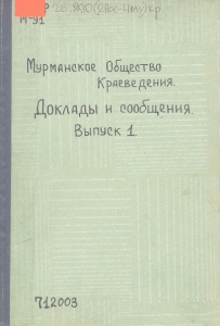 ? !Ы Ж Ю ( 0 9 ОС .. H m y ) t p \ ' Г Э 1 1 Мурманское Общество Краеведения. Доклады и сообщения В ыпуск 1. Ш о о з