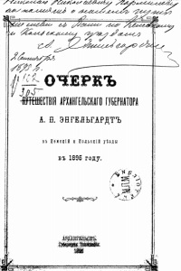 Энгельгард, А. П. Очерк путешествия архангельского губернатора А. П. Энгельгардт в Кемский и Кольский уезды в 1895 году / А. П. Энгельгардт. - Архангельск : Губернская типография, 1895. - 128,[2] с., карт.