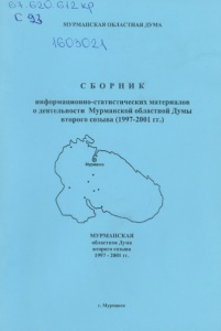 Сборник информационно-статистических материалов о деятельности Мурманской областной Думы второго созыва (1997-2001 гг.) / Мурм. обл. Дума. - Мурманск: Полиграфист, 2002. -[52] с.: ил.