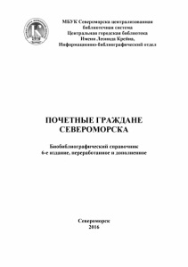 Почётные граждане Североморска : биобиблиографический справочник / МБУК Севером. централиз. библ. система ; [сост. Т. Червоненко, О. Авраменко, Л. Шелепникова, Т. Стрижова]. – 6-е изд., перераб. и доп. – Североморск : [б. и.], 2016. – 75 с. : ил.