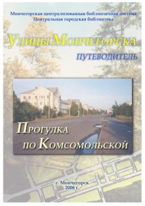 Улицы Мончегорска. Прогулка по Комсомольской : путеводитель / Мончег. централиз. библ. система, Центр. гор. б-ка ; [сост.: Л. В. Харитонова]. – Мончегорск : Центральная городская библиотека, 2006. – 24 с. : ил.