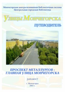 Мончегорская централизованная библиотечная система Центральная городская библиотека ПУТЕВОДИТЕЛЬ ПРОСПЕКТМЕТАЛЛУРГОВ - ГЛАВНАЯ УЛИЦА МОНЧЕГОРСКА ДАЙДЖЕСТ г. Мончегорск 2003 г.