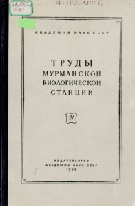 Мурманская биологическая станция. Труды Мурманской биологической станции. Т. 4 / Акад. наук СССР, Кол. фил. им. С. М. Кирова. – Москва ; Ленинград : Изд-во Акад. наук СССР, 1958. - 196, [1] с. : ил.