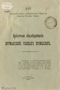 Анкетное обследование Мурманских рыбных промыслов/ Помор. отд. Арханг. о-ва изучения Рус. Севера ; (сост., по ответам рыбопромышленников, секретарь ком. отд., пожизнен. чл. Арханг. о-ва изучения Рус. Севера и чл.-корр. Вологод. о-ва изучения Сев. края и О-ва изучения Олонецкой губ. А. А. Каменев, при участии действ. чл. отд. А. Ф. Могутова). - Архангельск : Губернская типография, 1913. - 18 с.