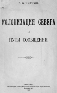 Чиркин, Г. Ф. Колонизация Севера и пути сообщения. 1920.