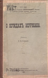 Гебель, Г. Ф. О нуждах Мурмана : доклад / Г. Ф. Гебель ; [печ. по распоряжению пред. С.-Петерб. Отд-ния Императ. О-ва для содействия рус. торговому мореходству]. – Санкт-Петербург : Типография Исидора Гольдберга, 1897. – 15 c.
