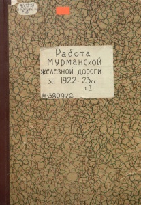 Работа Мурманской железной дороги за 1922-23 год : обзор деятельности Правления и Управления по отчетным данным. Т. 1 : Текст / Правление Мурм. ж. д. – Ленинград : издание правления Мурманской жел. дор., 1924. - 336 с., [2] л. схем : табл., схемы.
