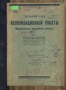 Второй год колонизационной работы Мурманской железной дороги : отчетный сборник колонизационного отдела Правления Мурманской железной дороги за 1924-25 год.- Ленинград : издание Правления Мурманской железной дороги, 1926. - 180 с., [8] л. карт. : ил., табл.