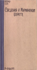 Сиденснер, Александр Карлович. Сведения о Мурманском береге, собранные летом 1896 года контр-адмиралом Сиденснером / [А. Сиденснер] ; Гл. Гидрогр. Упр. Мор. М-ва. – Санкт-Петербург : Типография Морского Министерства в Главном Адмиралтействе, 1897. – 102 c., 1 л. карт.