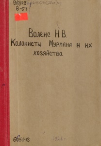 Воленс, Н. В. Колонисты Мурмана и их хозяйство : материалы статистико-экономического исследования 1921-1922 гг. – Москва : [б. и.], 1926. - 111, [1] с., [1] отд. л. Карт. : табл. - (Труды Научно-Исследовательского Института по изучению Севера (б. Северная Научно-Промысловая Экспедиция); Вып. 28).