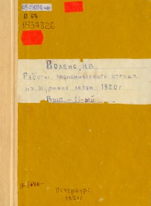 Воленс, Н. В. Работы Экономического отряда на Мурмане летом 1920 года : предварительный отчет / Н. В. Воленс ; Высш. Совет Нар. Хоз-ва, Н.Т.О. - Петербург : Госиздат, 1921. - 78, [1] с. - (Труды Северной научно-промысловой экспедиции ; вып. 11).