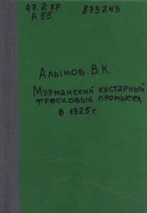 Алымов, В. К. Мурманский кустарный тресковый промысел в 1925 г. / [зав. Мурм. губ. стат. бюро В. Алымов ; Мурм. губ. стат. бюро]. – Мурманск : Типография изд. «Пол. правда», 1926. - 74 с. : табл.