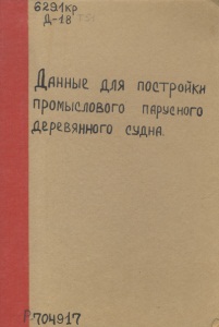 Токаревский, А. М. Данные для постройки промыслового парусного деревянного судна, вместимостью в 20 регистровых тонн брутто : тип N 6 : с 5-ю строительными чертежами / [корабел. инженер А. Токаревский ; предисл. Л. Брейтфуса] ; Ком. для помощи поморам Рус. Севера, Мурм. науч.-промысловая экспедиция. - Санкт-Петербург : Тип. И. Усманова, 1905.