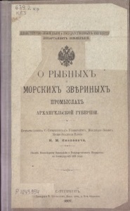 Книпович Н.М. О рыбных и морских звериных промыслах Архангельской губернии: (отчёт Минестерству земледелия и государственных имуществ Петерб. ун-та, мл. зоолого Музея Академии наук Н.М. Книповича). Санкт-Петербург, 1897.