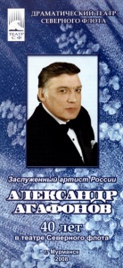 Заслуженный артист России Александр Агафонов : 40 лет в театре Северного флота : [буклет] / Драматический театр Северного флота. - Мурманск : [б. и.], 2008. - 1 л. (слож. втрое) : фот. + Вкладыш (29х13 см).