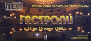 Мурманский областной театр драмы : гастроли с 12 по 20 июня 1999 г. : Дни культуры Мурманской области в Республике Беларусь : [буклет] / Мурманский драматический театр. – [Б. м. : б. и., 1999]. – 1 л. (слож. в 6 с.).