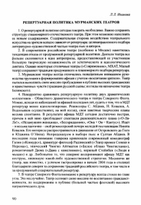 Иванова, Л. Репертуарная политика Мурманских театров // III Масловские чтения : регион. науч.-практ. и лит.-художеств. конф. памяти В. С. Маслова, 15-16 дек. 2004 г. / Мурм. гос. пед. ун-т и др. - Мурманск : МГПУ, 2005. - С. 90-92.