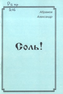 Абрамов, А. С. Соль! : стихи / Александр Абрамов . - Мурманск : Мурманское отделение Всероссийского фонда культуры, 1997. - 15 с. - Программа «Первая книга».