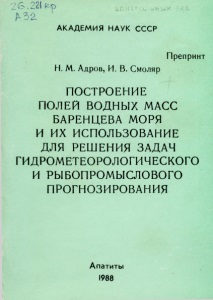 Адров, Н. М. Построение полей водных масс Баренцева моря и их использование для решения задач гидрометеорологического и рыбопромыслового прогнозирования / Н. М. Адров, И. В. Смоляр ; Акад. наук СССР. - Препр. - Апатиты : Кольский филиал АН СССР, 1988. - 44, [1] с. : ил.
