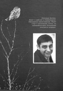Александр Акопянц. Живет и работает в Североморске. Образование военно-морское. Пишет стихи и критические статьи, но публиковался мало. В альманахе печатается впервые.