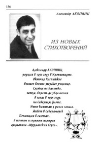 Акопянц, А. Э. Из новых стихотворений // Мурманский берег : литературный альманах / [Союз рос. писателей]. – Мурманск, 2003. - Вып. 8. - С. 136-143.