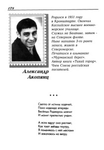 Акопянц, А. Э. «Светло от истины ходячей…» : [стихи] // Мурманский берег : литературный альманах / Мурм. орг. Союза рос. писателей. – Мурманск, 2008. - № 13. - С. 178-186 : фот.