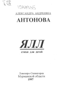 Антонова, А. А. Ялл : стихи для детей / А. А. Антонова ; Оленег. гор. лит. об-ние "Жемчуга" ; переводы с саам. Ю. Кудинова. – Ловозеро ; Оленегорск (Мурманской области), 1997. - 30, [1] с.