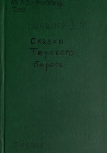 Балашов, Д. М. Сказки Терского берега : [для младшего и среднего школьного возраста] / запись, лит. обраб. сказок Д. М. Балашова. - Мурманск : Мурманское книжное издательство, 1972. - 104 с. : ил.