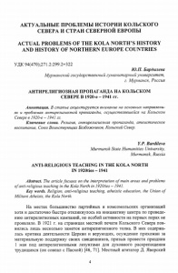 Бардилева, Ю. П. Антирелигиозная пропаганда на Кольском Севере в 1920-е - 1941 гг. // XI Ушаковские чтения / М-во образования и науки Рос. Федерации, Мурм. гос. гуманитар. ун-т. - Мурманск, 2015. – С. 4-17.