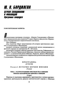 Бардилева, Ю. П. Церкви Скандинавии и Финляндии : программа спецкурса / Ю. П. Бардилева // Вестн. "Баренц-фак." МГПИ. - 2000. - 1'99 - С.77-82.