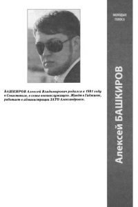 БАШКИРОВ Алексей Владимирович родился в 1981 году в Севастополе, в семье военнослужащего. Живёт в Гаджиеве, работает в администрации ЗАТО Александровск. МОЛОДЫЕ ГОЛОСА Алексей БАШКИРОВ