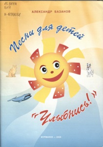 Базанов, А. А. Улыбнись! [Ноты] : сборник песен для детей 6-12 лет в сопровождении фортепиано / Александр Базанов ; [сост. Татьяна Малахова] ; Ком. по культуре и искусству Мурм. обл., Мурм. обл. Дом нар. творчества. - Мурманск : Мурманский областной Дом народного творчества, 2009. - 79, [1] с. : портр.