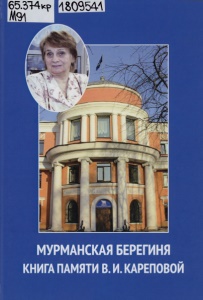 Мурманская Берегиня : книга памяти В. И. Кареповой : [сборник / коллектив авторов ; составитель, избранная библиография: Т. В. Акулова-Конецкая ; куратор В. М. Блинов ; редакторы: Н. Н. Чеснокова, Т. В. Акулова-Конецкая]. - Мурманск : Дроздов-на-Мурмане, 2021.- 87, [1] с., [5] л. портр. : ил., портр.