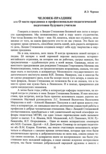 В.Э. Черник ЧЕЛОВЕК-ПРАЗДНИК или О месте праздника в профессионально-педагогической подготовке будущего учителя Говорить и писать о Люции Степановне Беляевой мне легко и непро сто одновременно. Мы познакомились ещё в пору моего студенчества. Уже тогда Беляева это было - имя. Её, казалось, знали все студенты, неза висимо от того, на каком факультете кто-то из нас учился. Это было не мудрено: яркая личность, способная увлечь идеей, дать радость интересно го дела, Люция Степановна создавала вокруг себя ауру творчества и ощу щение праздника. Но и она, казалось, всех знала. И всегда проявляла живой интерес к людям. Её интерес к моей скромной персоне выпускника историко английского отделения, на котором она не работала, сыграл важную, без преувеличения - судьбоносную роль в моей жизни. Однажды, после со вместного празднования дня рождения Геннадия Георгиевича Матаева она безапелляционно, тоном, не предполагающим возражения, сказала, что мне надо ехать и поступать в аспирантуру Московского государственного пе дагогического института имени В.И. Ленина. Наверное, сам я никогда бы не сделал решающего шага, если бы вскоре после того вечера, в самом на чале февраля, Люция Степановна не позвонила бы и не сказала, что в та- кие-то сроки мне нужно быть в Ленинском. И я поехал, прикрепился для сдачи кандидатских экзаменов. А затем были годы учёбы в аспирантуре кафедры педагогики, на ко торой когда-то училась и сама Люция Степановна Беляева. И нам впослед ствии, при встречах, всегда было приятно вспоминать наших дорогих на ставников. Научный руководитель Л.С. Беляевой Валентина Васильевна Мерцалова и мой - Алексей Иванович Пискунов в своё время вместе учи лись в аспирантуре, их связывали многие десятилетия совместной работы в профессии и добрые человеческие отношения. Нам с Люцией Степановной посчастливилось приобщиться к той удивительной научной атмосфере ка федры педагогики МГПИ, где одно только перечисление имён вызывало трепет и пиетет. Т.А. Ильина, М.Н. Медынский, А.П. Пинкевич, М.М. Ру бинштейн, И.Т. Огородников... Один из наших аспирантских семинаров вёл М.Н. Скаткин. Другой - А.Е. Дмитриев. Семинар по истории педагоги ки вёл В.М. Кларин. Конечно, мы имели счастливую возможность встре чаться и общаться с самыми яркими личностями, которые при этом были исключительно просты и доброжелательны ко всем нам, совсем юным то гда своим коллегам. А аспирантов иначе не воспринимали: мы были уча стниками всех заседаний кафедры, и наше мнение искренне интересовало мэтров, мы были членами добровольной народной дружины и вместе с 32