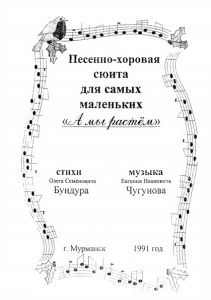 Чугунов, Е. И. Песенно-хоровая сюита для самых маленьких «А мы растем» / стихи О. С. Бундура ; муз.,[сост.]: Е.И. Чугунов ; [отв. за вып. В. П. Махаева]. - Мурманск, 1991. - 39 с. : ил.