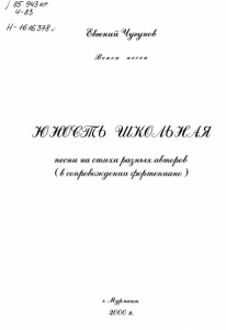 Чугунов, Е. И. Юность школьная : песни на стихи разных авт. (в сопровождении фортепиано) / Е. И. Чугунов ; предисл. Г. Каликина. - Мурманск, 2000. - 30 с. - (Венок песен).