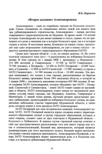 И.Б. Циркунов «Второе дыхание» Александровска Александровск - один из старейших городов на Кольском полуост­ рове. Своим основанием он ознаменовал начало новой для нашего края эры урбанизированного строительства. Александровск - первая ласточка современного градостроительства на Мурмане. За время своей 110-летней истории Александровск не раз менял название и статус, однако это не при­ нижало его роли и значения как в истории Кольского края, так и в истории страны в целом. В настоящее время, буквально на наших глазах, происхо­ дит еще одно возрождение Александровска, но уже в новом статусе - за­ крытого административного территориального образования (ЗАТО). Среди всех городов области - а их, по нашим данным, 16, без учета поселков городского типа (пгт) - 6 расположены на побережье Кольского залива. В этих городах на 1 января 2008 г. проживало: в Мурманске - 314 800 жителей, в Североморске - 53 500 (в ЗАТО Североморск - 73 500 человек), в Полярном - 16 500 (в ЗАТО Полярный - 16 600 чело­ век), в Гаджиево - 12 800 (в ЗАТО Скалистый - 15 900 человек), в городе и ЗАТО Снежногорск - 14 300 человек и в Коле - 10 600 человек. Эти дан­ ные показывают, что только в этих городах, расположенных по берегам Кольского залива, проживает более 50% населения области, в которой на 1 января 2008 г. численность населения составляла 850 900 человек. В све­ те создания ЗАТО Александровск, которое объединит три ЗАТО - Поляр­ ный, Скалистый и Снежногорск, - новое ЗАТО станет одним из крупней­ ших в области. ЗАТО Александровск станет пятым по численности насе­ ления, уступая таким городам, как Мурманск, Апатиты, Североморск и Мончегорск. С нашей точки зрения, научный интерес представляет про­ цесс урбанизации, происходящий на побережье Кольского залива, на срав­ нительно небольшом участке территории Мурманской области, а также роль, которую играет в этом процессе ЗАТО Александровск. ЗАТО Полярный дал свое историческое название Александровск но­ вому ЗАТО. ЗАТО Полярный является ядром создания нового территори­ ального образования, входит в группу городских образований, которые, в свою очередь, создают один из двух кластеров в Мурманской области - Кольского и Хибинского. В данном случае городской кластер сочетает в себе как пространственное расположение того или иного города или пгт, так и основополагающий, базовый вид деятельности, который является доминирующим для этого населенного пункта. Базовым видом деятельно­ сти можно считать морскую деятельность. Александровск-Полярный, а те­ перь ЗАТО Александровск играет значительную роль и в Кольском кла­ стере, и в процессе урбанизации Мурманской области. 14