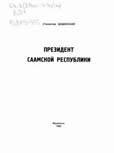 С Ъ Л ( 2 і$ос-ЧѵѴ)ѵЦ> Х ѵ . ? л ' : г ~ Ѵ ~ Станислав ДАЩИНСКИЙ ПРЕЗИДЕНТ СААМСКОЙ РЕСПУБЛИКИ Мурманск 1 9 9 9