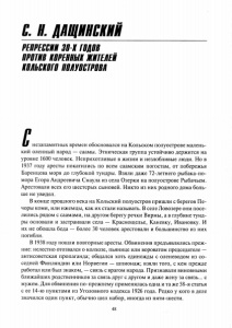 Дащинский, С. Н. Репрессии 30-х годов против коренных жителей Кольского полуострова // Вестник «Баренц-факультета» МГПИ. - 2000. - 1'99. - С. 48-50.