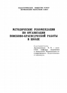 DranishnikovVV_MetМетодические рекомендации по организации поисково-краеведческой работы в школе. Мурманск, 1979.