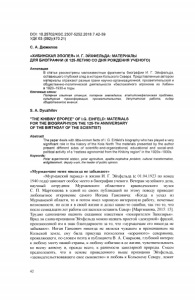 DOI: 10.25702/KSC.2307-5252.2018.7.42-59 УДК 63 (092)(470.21) С. А. Дюжилов «ХИБИНСКАЯ ЭПОПЕЯ» И. Г. ЭЙХФЕЛЬДА: МАТЕРИАЛЫ ДЛЯ БИОГРАФИИ (К 125-ЛЕТИЮ СО ДНЯ РОЖДЕНИЯ УЧЕНОГО) Аннотация В статье рассмотрены малоизвестные фрагменты биографии И. Г. Эйхфельда, оставившего глубокий след в истории Кольского Севера. Представленные автором материалы отражают разные грани научно-организационной, просветительской и общественно-политической деятельности «беспокойного агронома из Хибин» в 1920-1930-е годы. Ключевые слова: Полярная опытная станция, полярное земледелие, апатитонефелиновая проблема, культурная трансформация, просветительство, депутатская работа, лидер общественного мнения. S. А. Dyuzhilov "THE KHIBINY EPOPEE" OF I.G. EIHFELD: MATERIALS FOR THE BIOGRAPHY(ON THE 125-TH ANNIVERSARY OF THE BIRTHDAY OF THE SCIENTIST) Abstract The paper deals with little-known facts of I. G. Eihfeld’s biography who has played a very significant role in the history of the Kola North The materials presented by the author present different sides of scientific-and-organizational, educational and social-and- political activity of a "restless agronomist from the Khibiny region" in the 1920s-1930s. Keywords: Polar experimental station, polar agriculture, apatite-nepheline problem, cultural transformation, enlightenment, deputy work, the leader of public opinion. «Мурманчане меня никогда не забывают» «Мурманский период» в жизни И. Г. Эйхфельда (с 01.04.1923 по конец 1940 года) занимает особое место в биографии ученого. Ветеран музейного дела, научный сотрудник Мурманского областного краеведческого музея С. П. Мартюшова в одной из своих публикаций по этому поводу приводит любопытное откровение самого Иогана Гансовича: «Когда я уехал из Мурманской области, то и потом имел хорошую интересную работу, почетные возможности, но если я в своей жизни и делал какие-то ошибки, так это то, что после семнадцати лет работы согласился оставить Север» [Мартюшова, 2015: 15]. Трудно однозначно оценить сказанное известным «покорителем Заполярья». Вряд ли слова-признания Эйхфельда можно назвать простой «дежурной» фразой, произнесенной им в знак благодарности за то, что «мурманчане его никогда не забывают». Иоган Гансович никогда не являлся чужаком и временщиком на Кольской земле, ему была присуща психология «коренного» северянина, проявляющего, по словам поэта и публициста В. А. Смирнова, глубокий интерес к любому месту нашей страны, к любому событию в ее жизни, чувствительность ко всему живому и, прежде всего, к ранимости заполярной природы. Смеем предположить, что в основе приведенного выше признания Эйхфельда, «засвидетельствовавшего свое сыновство» и любовь к Кольскому Северу, лежит 42
