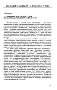 АКАДЕМИЧЕСКАЯ НАУКА НА КОЛЬСКОМ СЕВЕРЕ С.А.Дюжилов СУДЬБЫ НАУКИ НА КОЛЬСКОМ СЕВЕРЕ (ПО МАТЕРИАЛАМ КОЛЬСКОЙ БАЗЫ АН СССР) История знаний и научной мысли аккумулирует в себе весьма значительный, но далеко еще не востребованный исследовательский потенциал. В последние годы размышления о генезисе отечественной науки дополнились острыми дискуссиями о ее феномене в тоталитарном обществе. Возросший интерес к названной проблематике не случаен. Вплоть до конца 1980-х годов отражение истории советской науки в литературе было крайне односторонним, со множеством искажений и пресловутых "зияющих пустот". Иначе и не могло быть. Как справедливо замечает М.Г.Ярошевский, "отравленная сталинизмом историография адекватно реконструировать прошлое не могла" [Ярошевский 1991: 11]. Введение в оборот надежной источниковой базы и осмысление на ее основе специфики взаимоотношений между властью и наукой в условиях господства коммунистической идеологии и тоталитарного правления позволит воссоздать историю советской науки во всей ее полноте и доподлинности. Именно этим и определяется в настоящее время актуальность и перспектива разработки обозначенной темы. На наших глазах происходит серьезная переоценка сложившихся в историографии проблемы теоретических схем. Результатом поисковой и аналитической работы стали вышедшие в свет в 1990-х годах цикл статей о репрессированных славяноведах [Советское славяноведение 1990; Славяноведение 1992] и востоковедах [Репрессированное востоковедение 1990], биографические материалы репрессированных геологов [Репрессированные геологи 1995] и биогеохимиков [Памяти биогеохимиков 1994], сведения о сотрудниках АН СССР и АН Белоруссии, пострадавших от репрессивной машины [Возвращенные имена 1992; Трагические судьбы 1995; Кольцов 1997], документы и материалы следственного дела по обвинению акад.С.Ф.Платонова [Академическое дело 1993]. Появились исследования о трудных годах советской биологии, трагедии генетики, подвиге акад.Н.И.Вавилова [Александров 1992; Дубинин 1992; Поповский 1991]. Издана монография, в которой рассказано об ущербе, нанесенном отечественному языкознанию так называемым "новым учением о языке" акад.Н.Я.Марра [Алпатов 1991]. Особо следует выделить публикации, осуществляемые по программе "Репрессированная наука" Санкт- Петербургским филиалом Института истории естествознания и техники им. С.И.Вавилова РАН и Международным фондом истории науки с целью введения в научный оборот документов и фактов, ранее не известных общественности [Репрессированная наука 1991, 1994]. 101